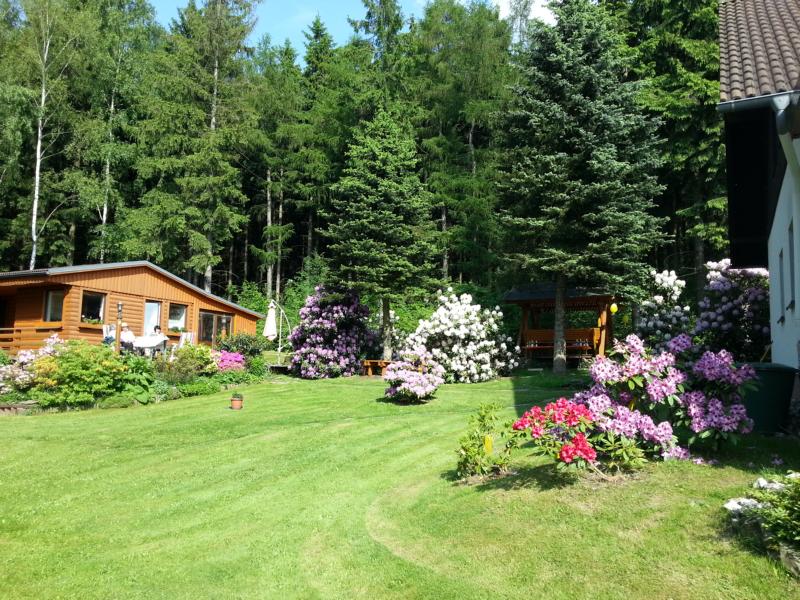 Unser Ferienhaus liegt inmitten eines sehr gepflegten Waldgrundstückes mit zahlreichen Rhododendron- und Azaleensträchern. Überall blüht und grünt es!