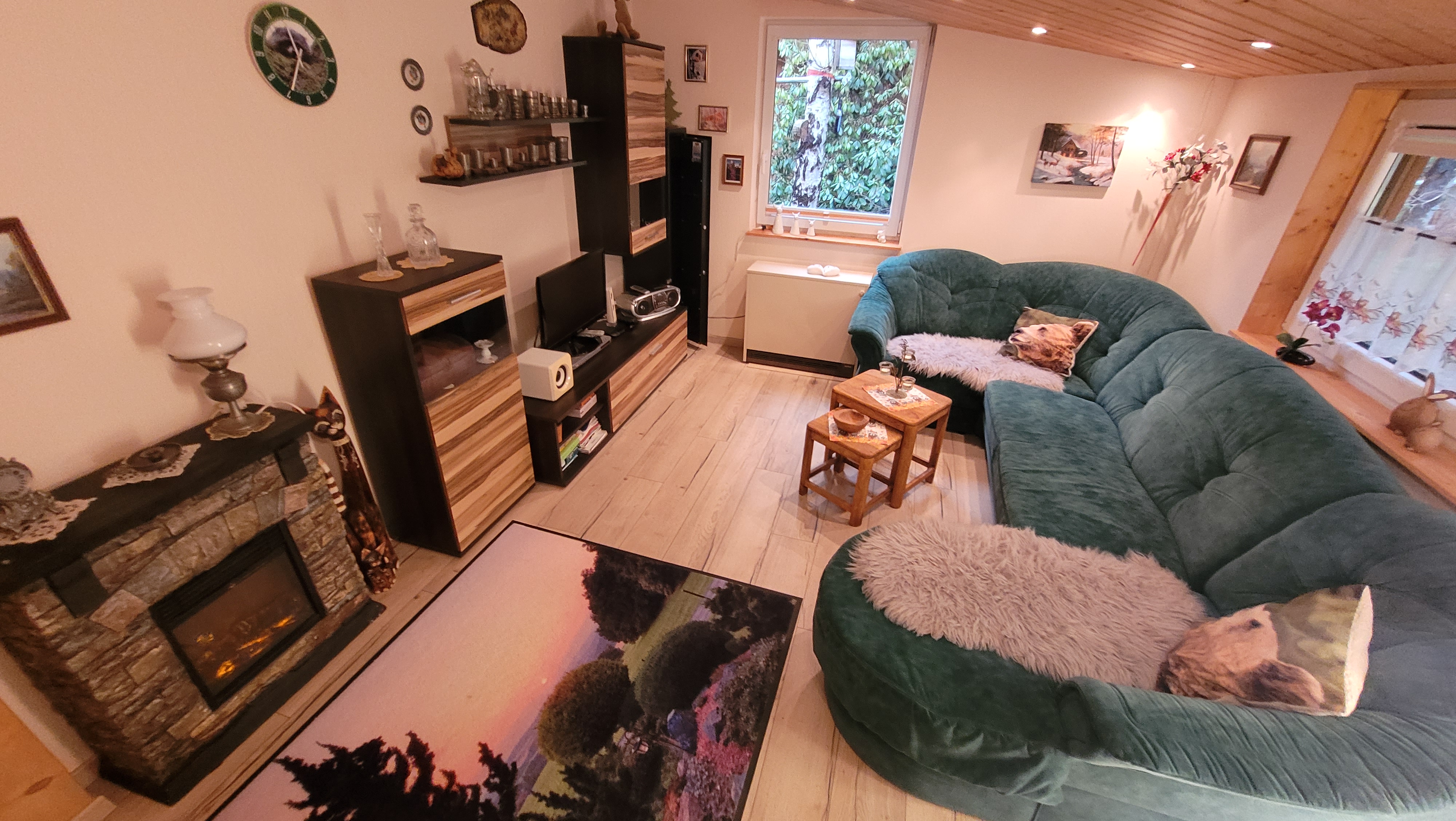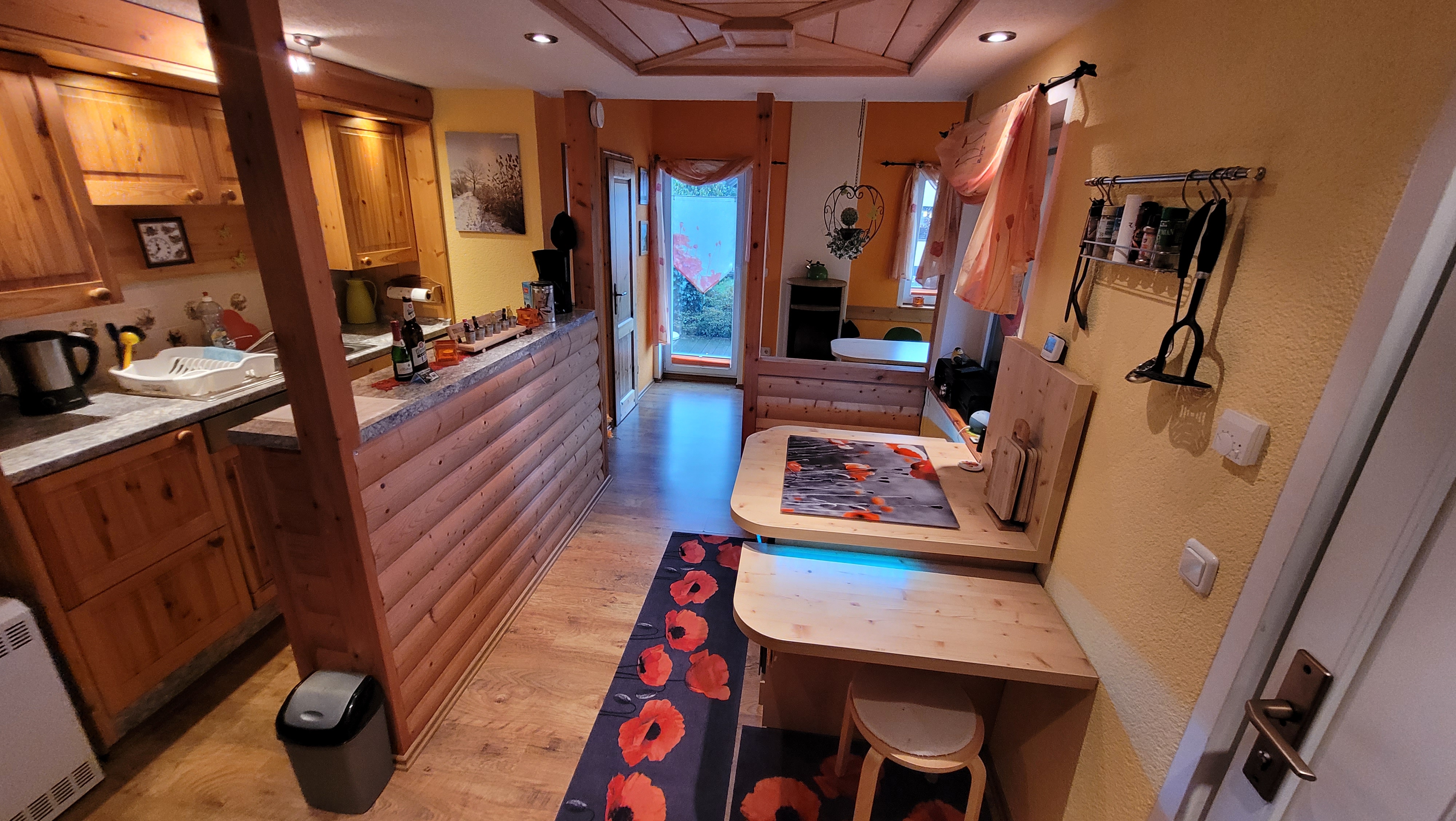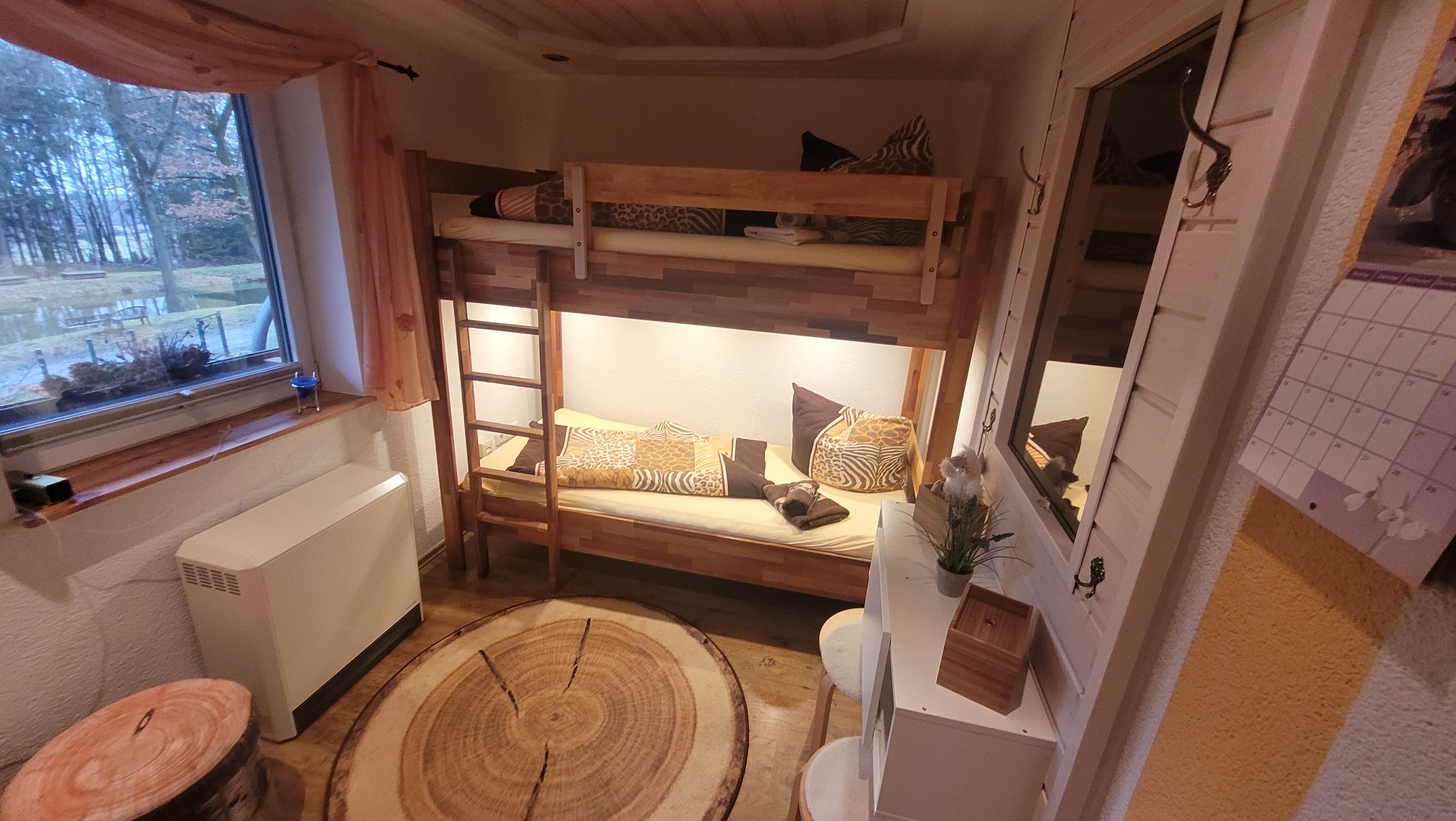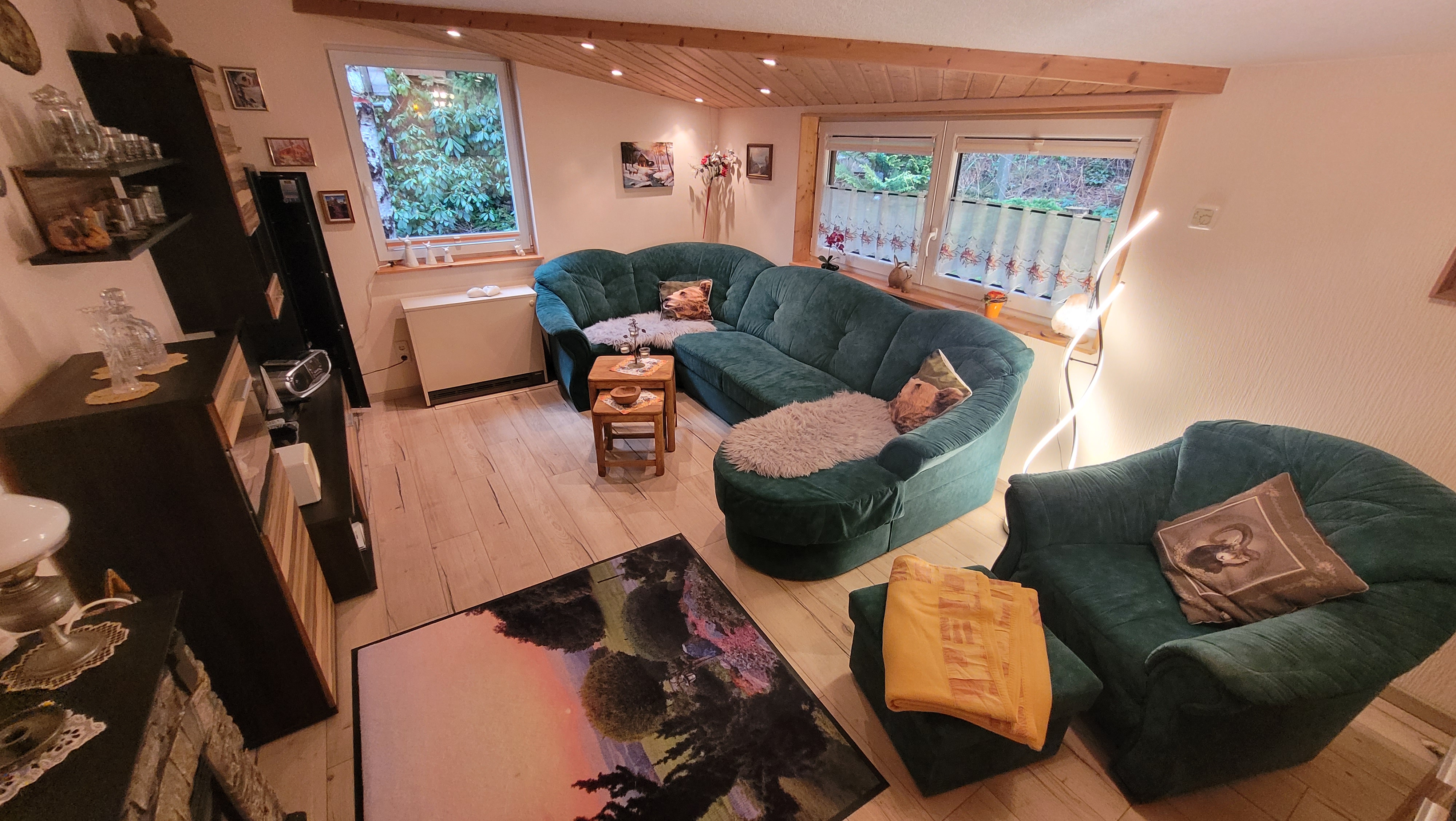 In unseremFerienhaus befinden sich zwei Schlafzimmer, ein Wohnzimmer, ein Bad mit DU und WC, eine Küche, ein kleines Kinderzimmer, ein Eßzimmer und ein Relaxraum mit großem Schlafsofa, Flatscreen und interessanter Lichtgestaltung.