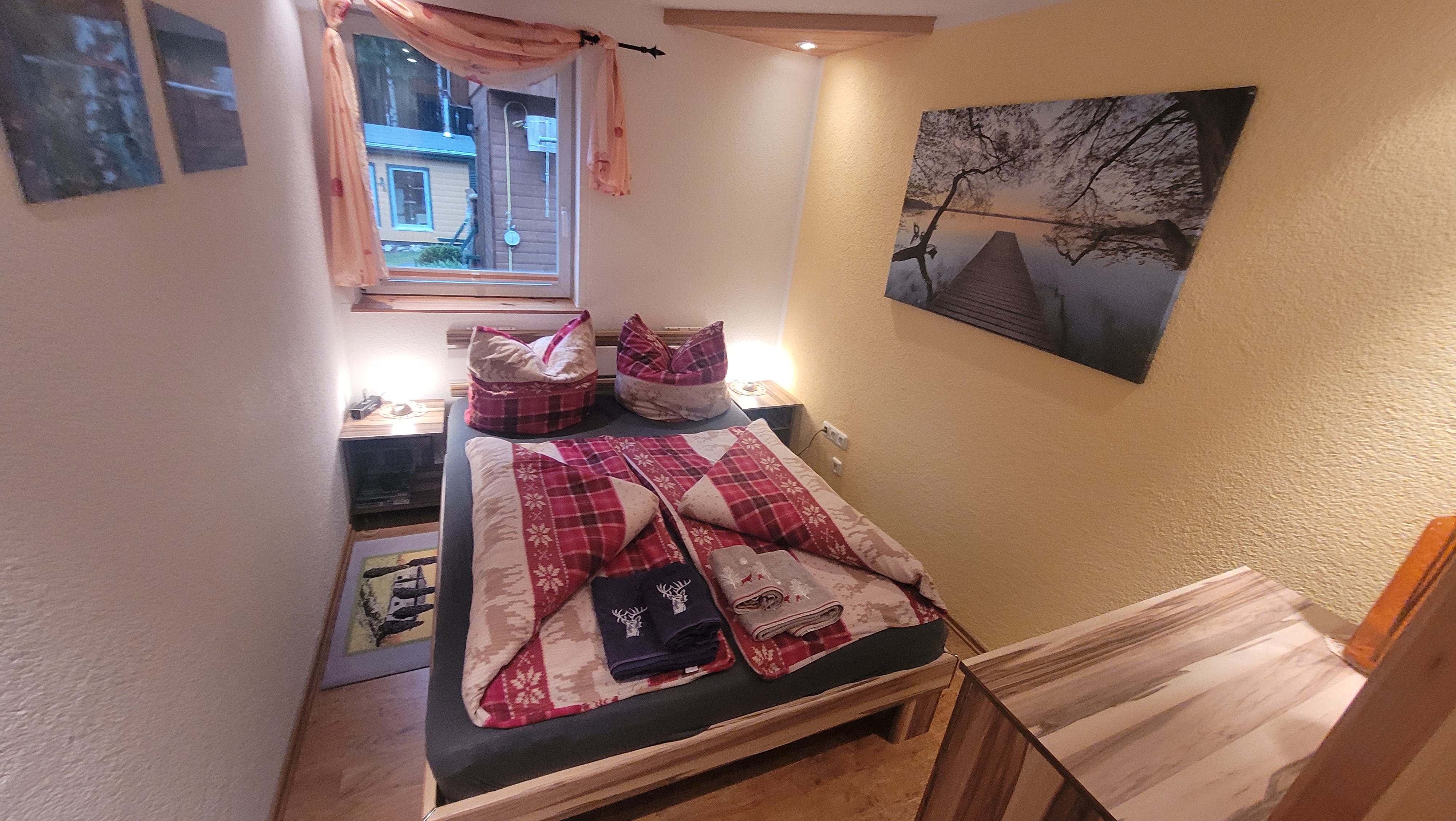 Das Schlafzimmer mit Doppelbett ist gemütlich