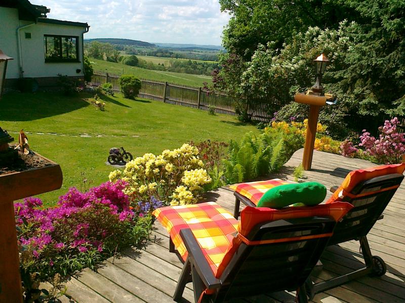Grillschaukel mit herrlichem Fernblick über das Vogtland und Frühstück im Wald